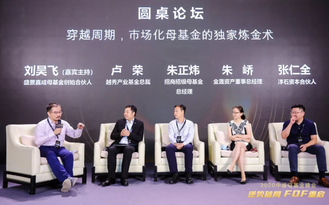 第三场圆桌论坛讨论了“穿越周期,市场化母基金的独家炼金术”,盛景嘉成母基金创始合伙人刘昊飞作为主持,与嘉宾越秀产业基金总裁卢荣、招商招银母基金总经理朱正炜、金晟资产董事总经理朱峤、淳石资本合伙人张仁全共同献上了一场精彩的对谈。