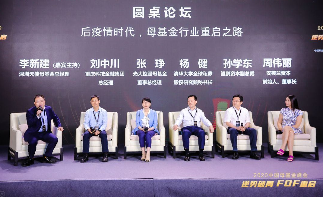 在以“后疫情时代,母基金行业重启之路”为主题的圆桌论坛中,深圳天使母基金总经理李新建作为主持人,重庆科金总经理刘中川、光大控股母基金董事总经理张琤、清华大学全球私募股权研究院秘书长杨健、鲲鹏资本副总裁孙学东、安芙兰资本创始人、董事长周伟丽参与讨论,就应对疫情的战略、募资形势的变化、募资工作的重点等方面的问题进行了分享与探讨。
