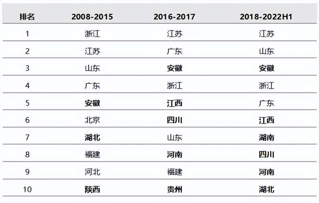 在宏观政策支持和部分城市成功经验的鼓舞下,各地政府设立引导基金“遍地开花”。如合肥市政府被媒体称为“中国最大的风投机构”,各地都争相学习借鉴,从东部城市延伸道中西部地区城市。与此同时,部分先行先试的发达省份设立基金呈现纵向渗透态势,从省会城市、地级城市向“区县下沉”。清科研究中心数据显示,截至2022年一季度,排名前20位的省(市)所设立的基金数量近1800支,几乎覆盖了东中西主要省份,其中江苏、浙江、山东位居前三,分别达到237支、182支、160支,排名靠后的重庆、广西、内蒙古也分别达到了33支、36支、43支。从设立时间线来看,2008年至2015年,基金设立数量前十的省份中,有7个属于东部沿海地区(浙、苏、鲁、粤、京、闽、冀),中西部地区只有安徽、湖北、陕西三省。2016年至2017年,基金设立数量前十的省份中,有5个属于东部沿海地区(苏、粤、浙、鲁、闽),中西部地区上升到5个,分别是安徽、江西、四川、河南、贵州。2018年至今,基金设立前十位的省份中,有4个是东部沿海地区(苏、鲁、浙、粤),中西部地区则上升到6个,分别是安徽、江西、华南、四川、河南、湖北。总体看来,长三角、珠三角及环渤海地区的基金设立持续保持活跃,四川、江西、湖北、河南等中西部地区的政府引导基金设立速度明显增加。